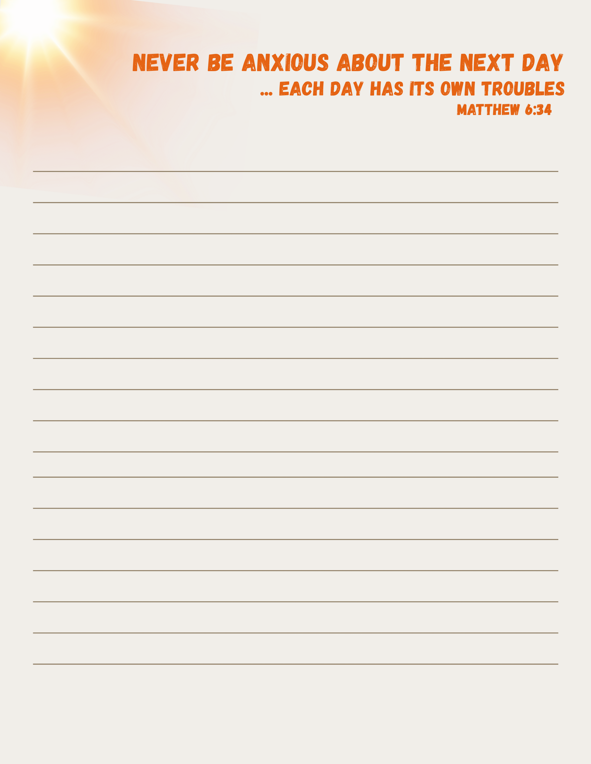 "Never be anxious about the next day ...Each day has its own troubles”