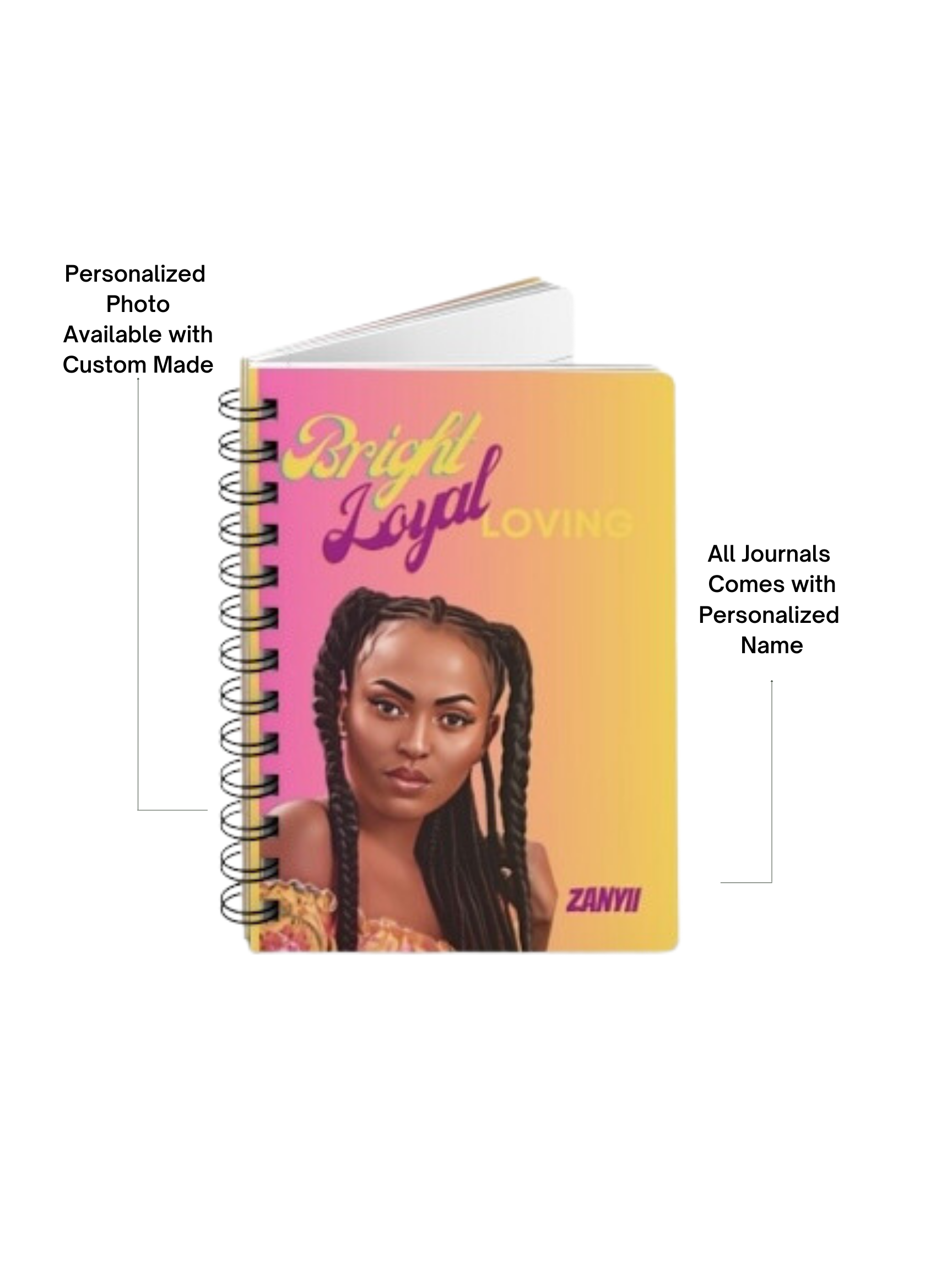 This cool spiral-bound journals comes with a personal touch with your personalize name reflecting your personalilty! Great for School Notes, Shopping List, Poems and Daily Personal Notes!